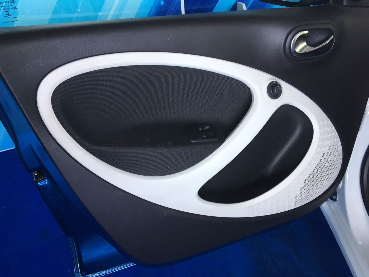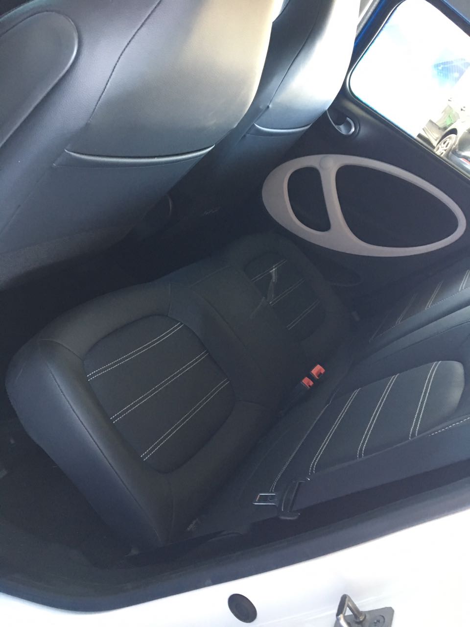 Allestimento interno in pelle con cuciture a contrasto bianche